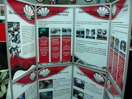 Panel displays with the history of steelpans